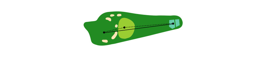 目に飛び込んでくるガードバンカーのプレッシャーが大きく、ティーグランドから砲台グリーンの全体が見えないため、距離感をつかみにくい。グリーン手前にある3つのバンカーはアゴが高く、入れると脱出に手こずる場合も。グリーン奥はバンカーがないので、多少のグリーンオーバーを見越して、右サイドから大きめのクラブでグリーンをキャッチしていけば攻略しやすい。