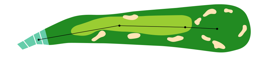 左サイドの高梁川方向が開けていてOBが近い印象があり、右サイドのOBも気になるため、ティーショットが鍵を握るロングホール。距離はそれほど長くないので、一打目は飛距離よりも方向性を重視したい。セカンドからはフェアウエイが広く見えるので、距離を計算しながら確実にパーでホールアウトできるように。ロングヒッターであれば2オンも可能な、比較的バーディの取りやすいホール。